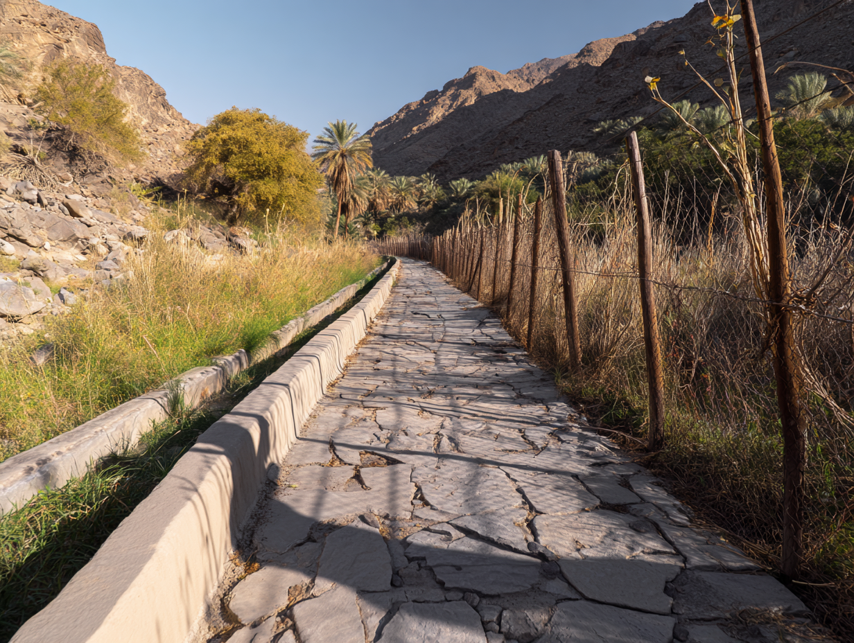 Ain Al Sheria is one of Fujairah’s most iconic geology-focused hikes. You’ll walk through dramatic mountain corridors where rock layers shift in color as you move deeper into the range — the reason it’s known as the “Geological Trail.”